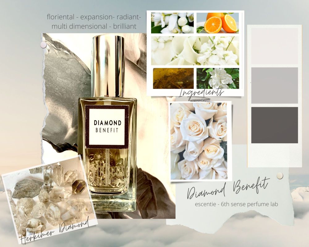 De Diamond Benefit blend biedt een rijk spectrum op het pad van groei en ontwikkeling en is een echte ascensie activator. Het helpt je op ontelbare subtiele niveau's verandering toe te laten en eigen te maken.Jouw assimilatieproces van kennis op een dieper niveau. Helpt om zowel vanuit je hemel-aarde verbinding als binnenwereld buitenwereld relatie ( de verticale en horizontale as) de eigenheid vanuit het hart en de diamanten straal, je eigenheid volledig te ontvouwen. De diamant is de hardste steen en kan snijdend of als een moker voelen wanneer je er nog niet klaar voor bent. De inclusies in de herkimer helpen je, om te leren gaan met geopatische belasting zodat je deze frequenties kunt overstijgen. Diamond Benefit stimuleert je jouw eigen plek en ware grootte vanuit je innerlijke licht komend, volledig in te nemen. Multidimensionaal.