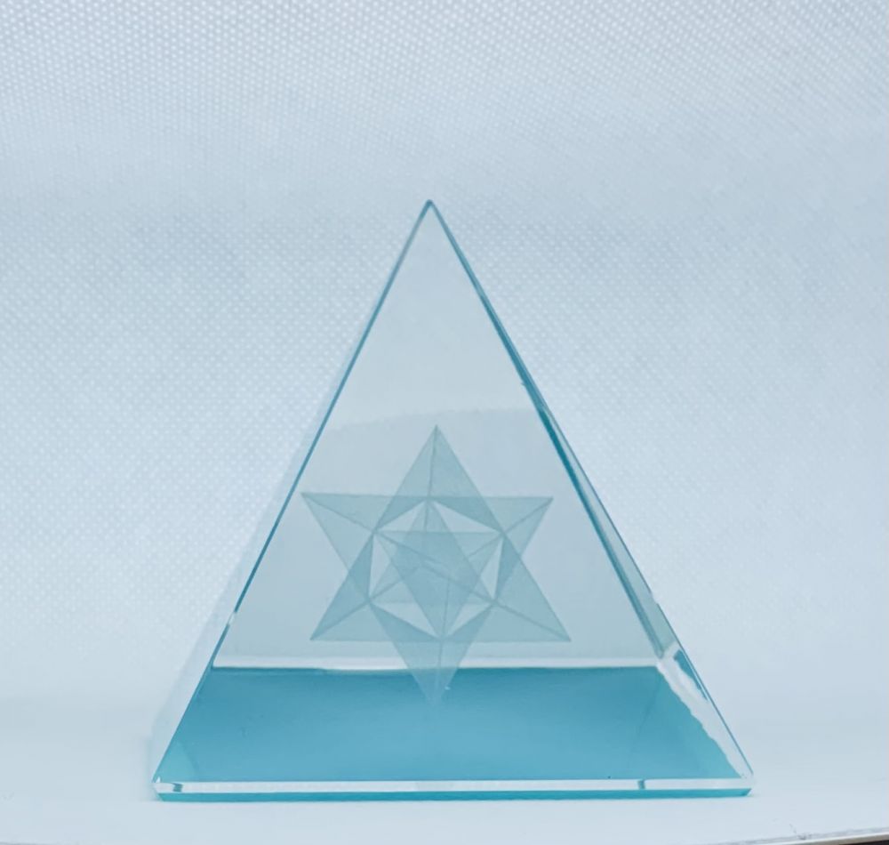 De merkaba piramide heeft de spirituele kleur turquoise. Deze zielskleur correspondeert nummerologisch met het getal 10; een nieuw begin vanuit de innerlijke gaven. Binnenin de piramide bevindt zich een merkaba. De naam MerKaba is in oud egyptisch een samenvoeging van drie woorden; licht, geest en lichaam : mer- ka- ba.